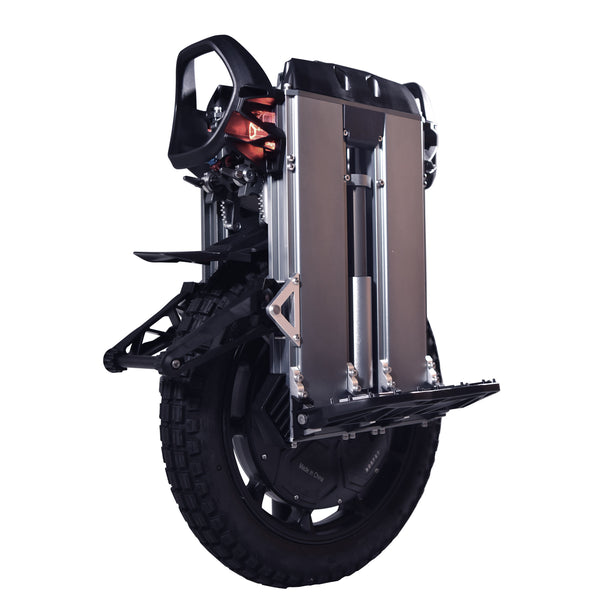 Ovaj model se izdvaja svojom inovativnom konstrukcijom i naprednim sustavima, koje rijetko viđamo u industriji EUC-a. Njegov hidraulički ovjes promjenjive visine s hodom od 150 mm omogućuje vozaču da precizno prilagodi visinu pedala i tvrdoću ovjesa, čime APEX postaje idealan i za ekstremne off-road uvjete i za brze gradske vožnje. Velike 2.75-14 inčne tubeless gume osiguravaju optimalno prianjanje, stabilnost i izdržljivost na neravnom terenu.