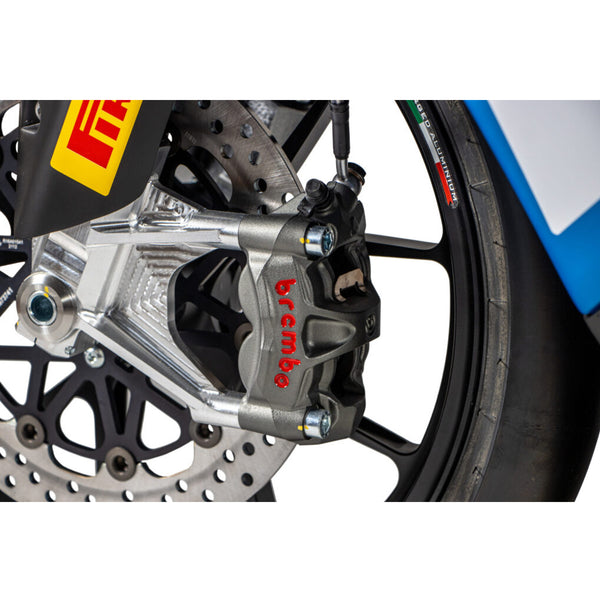 Prednji kočioni sustav: Brembo M50 monoblok radijalna čeljust (4 klipa, promjer 30 mm). Plutajući Brembo trkaći kočioni disk, promjera 300 mm – Aluminijska prirubnica. Sinterirane pločice. Brembo RCS 14×18/20 radijalni glavni cilindar i opleteno čelično crijevo