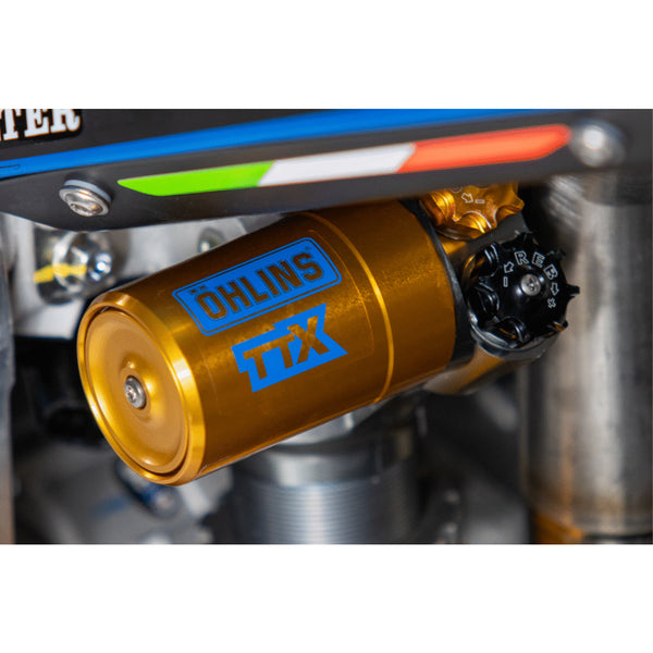 Stražnji ovjes: Aluminijska stražnja vilica s podesivom krutošću. OHLINS TTX Monoamortizer s "piggyback" spremnikom. Potpuno podesiv: prigušenje kompresije i povrata, prednaprezanje opruge i dužina